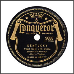 The trumpeters were removed in 1934 and replaced by a simplified shield design. When ARC was bought by CBS in 1938, CBS kept the Conqueror label and packaged the label in sets. In the label’s final days (1938-1942) the Conqueror’s shield appeared as black rather than red. Many of Conqueror’s artists used pseudonyms and because Sears was at various times contracting three different record companies to produce music and those record companies often drew from the same catalogs or master records there is considerable duplication of music. However, some records may be alternate takes, and records produced after the 1938 acquisition tended to be artists from the CBS catalogs.