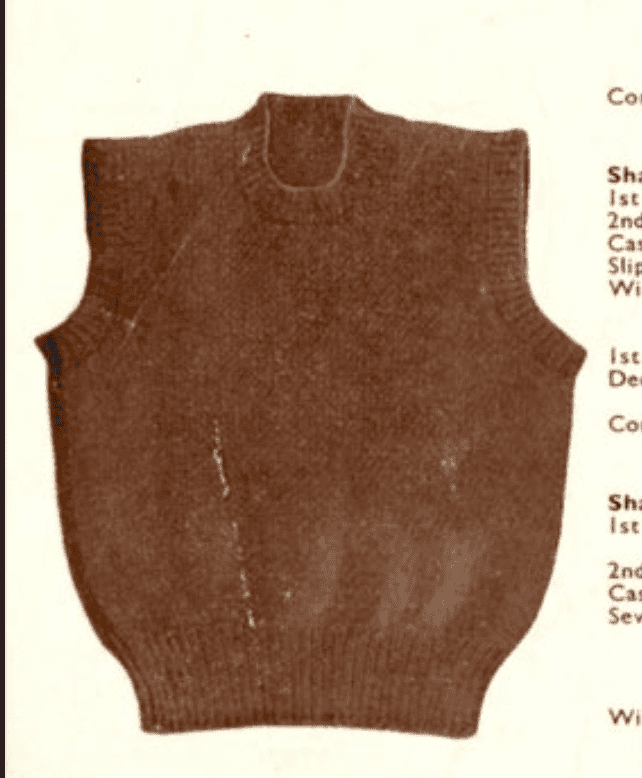 Sirdar is a British Knitting company founded in the 1800s. For a history of the company, this article from Knit and Nibble is pretty condensed. Sirdar produced knitting patterns such as the pullover with collar and as a vest seen below. You can download this pattern here. Sirdar also has copies of 40s patterns (among other eras) in their Heritage section here. Many of which would have been found amongst the civilian and army populations of World War II.