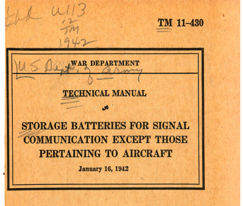 TM 11-430 Storage Batteries for Signal Communication Except Those Pertaining to Aircraft Jan 1942 – Discusses how to store batteries safely including BB-52, BB-41 and BB-51.